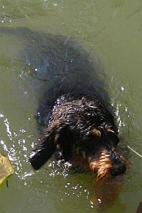 schwer fiel, da ich total auίer Atem war) kam mir Dora freudig wedelnd entgegen. Gott sei Dank war sie vollkommen unverletzt.